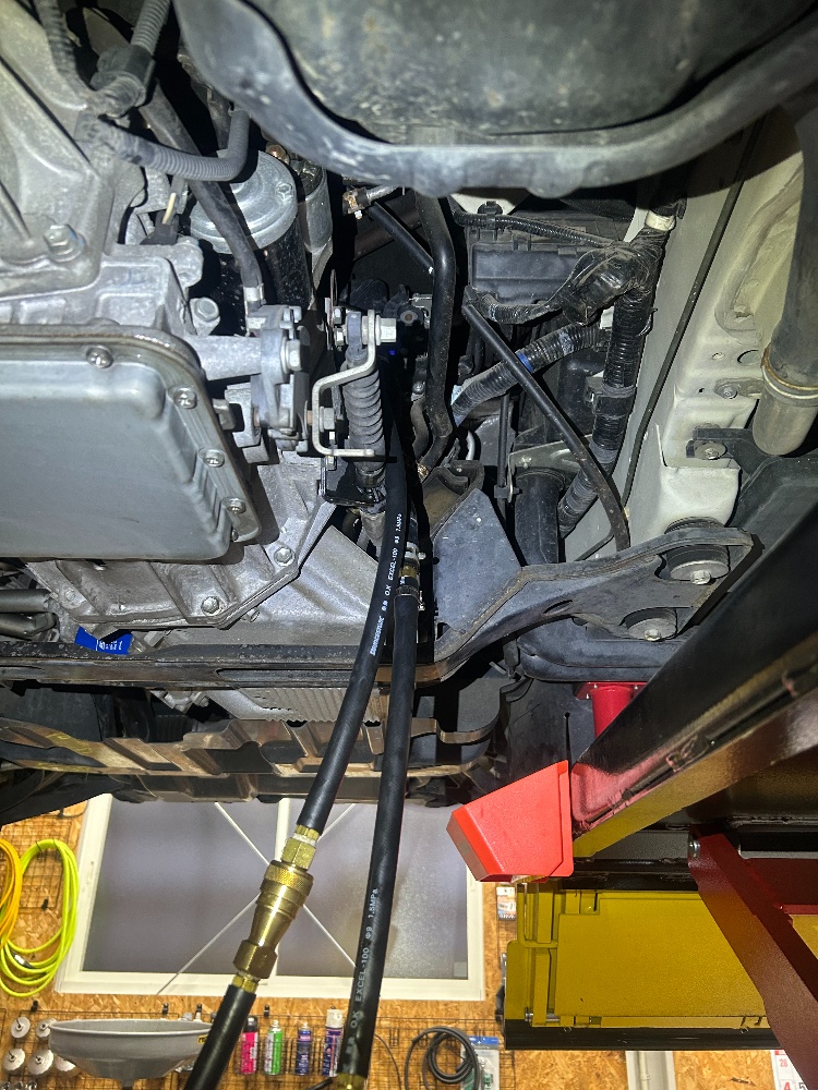 ある程度油温が上がったら圧送交換を始めていきます