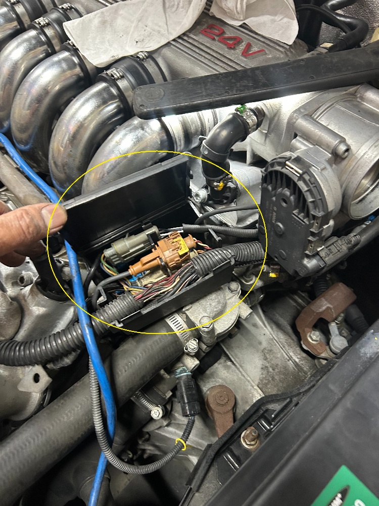 先ずインテーク・ホースを外しBOX内のカプラーを外して手前のホースをずらしてカムセンサー本体を交換します