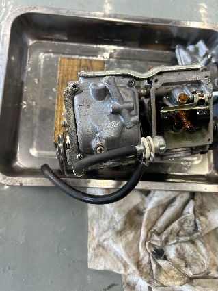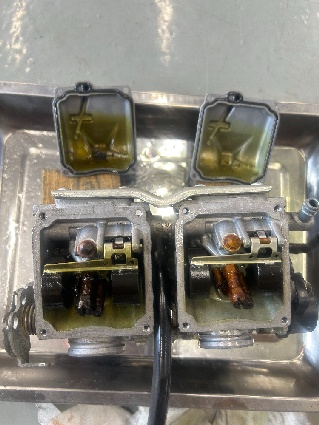 状態を確認すると案の定ガソリンが劣化しておりますね、先ずはキャブレターを外して状態を確認してみると