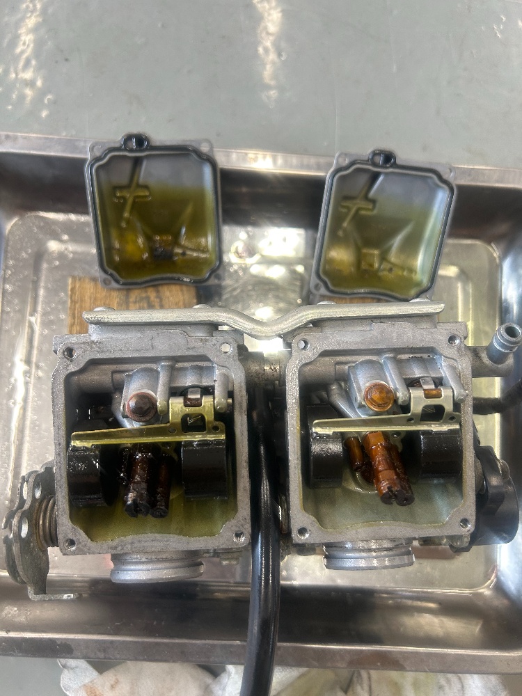 ひどい状態です、キャブクリーナーにドブ浸けしている間にオーバーホールキットを注文しておきます