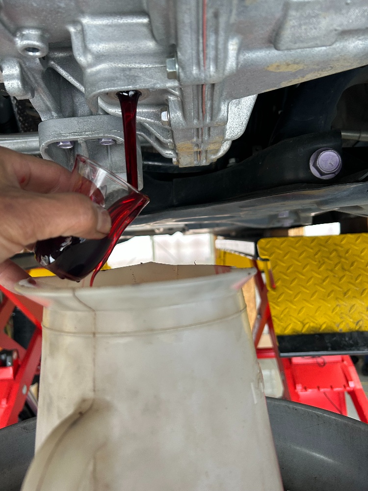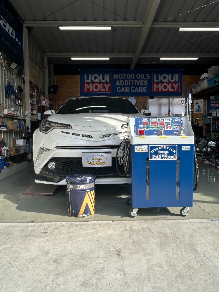 今回の車両はトヨタ C-HR(ZYX10)トルコン太郎でのATF圧送交換でのご入庫ですこの車両はオイルパンが無くストレーナーも交換出来ないタイプになります先ずはドレンからフルードを抜きますトルコン太郎とクーラーホースを接続して抜けた分を充填して圧送交換をスタートします数回繰り返して約15リットル入れ替えて綺麗になりましたご依頼いただきありがとうございました
